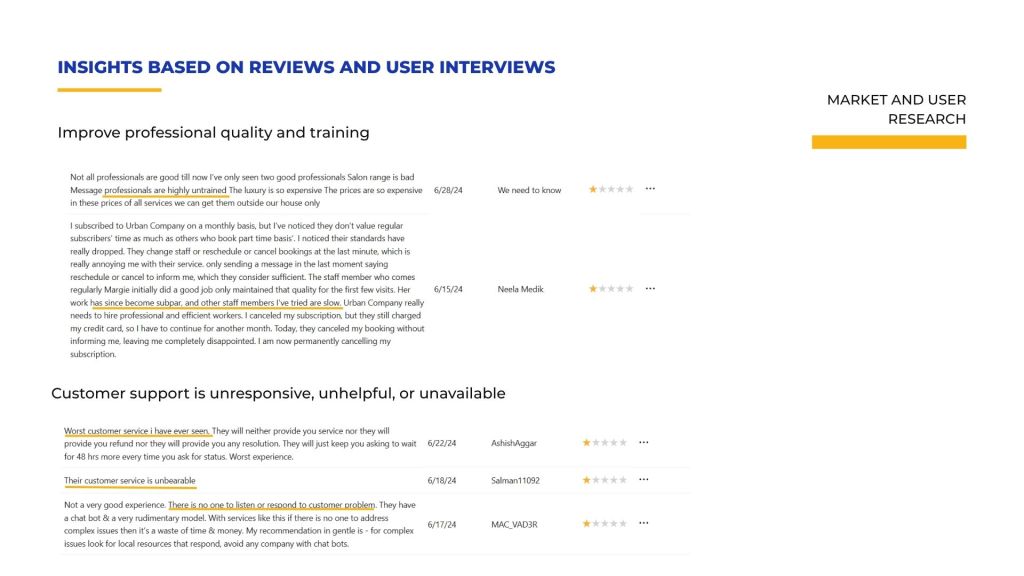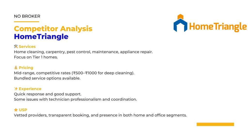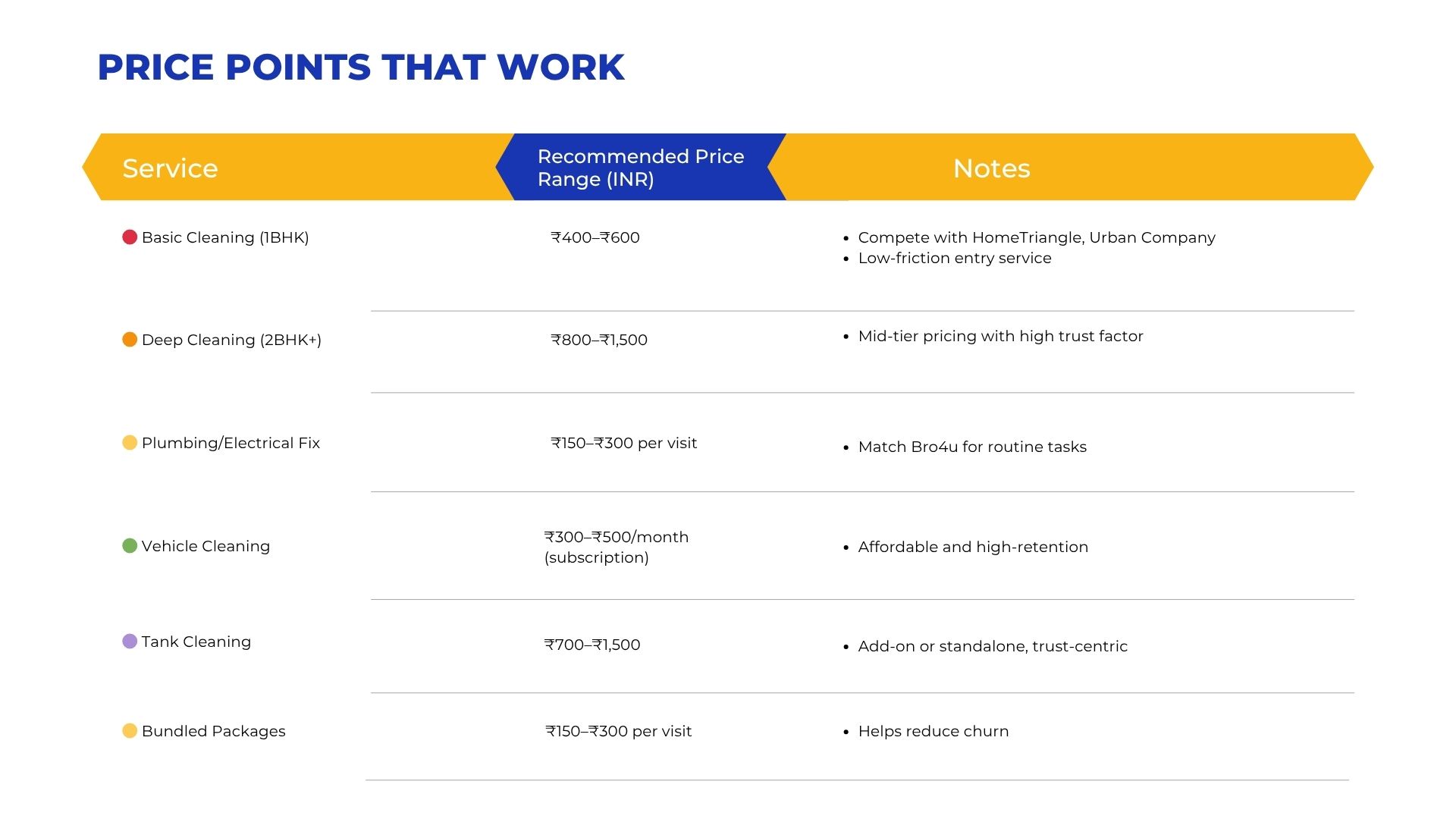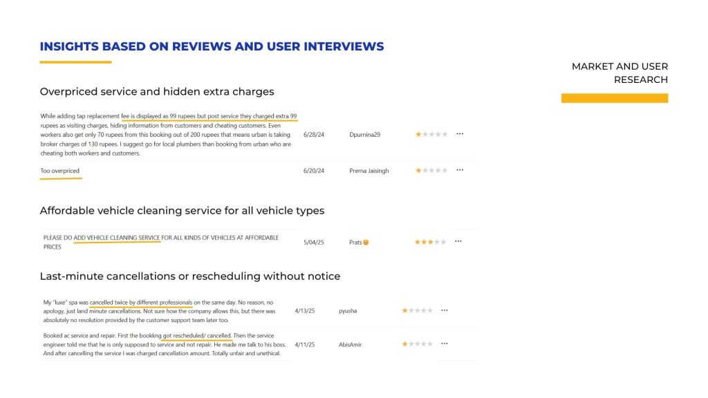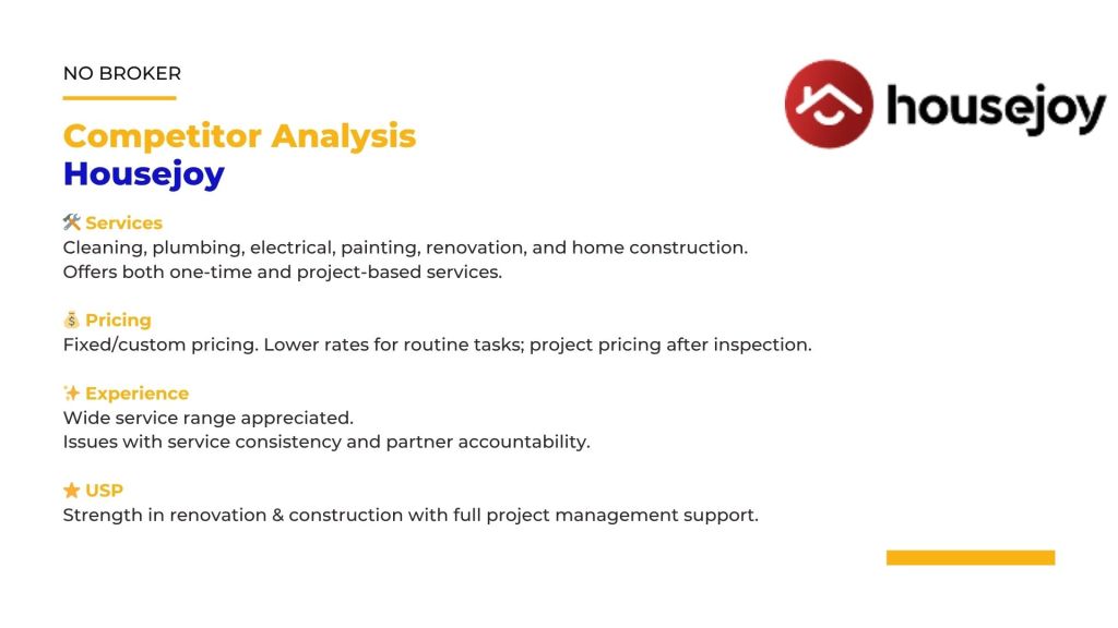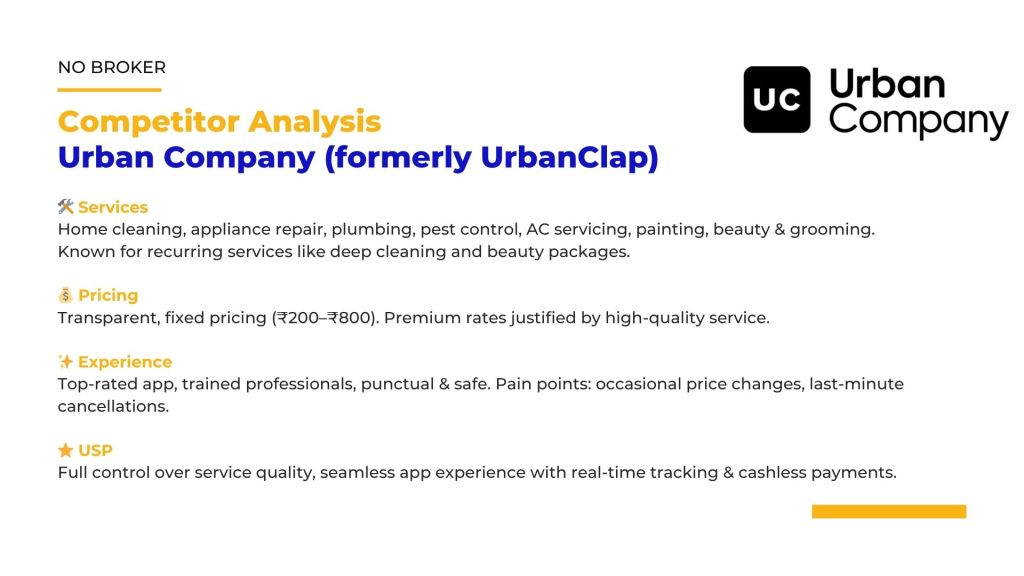 | 🏁 Competitor Benchmarking | Analyzing Urban Company, Housejoy, etc., to spot differentiation opportunities. |