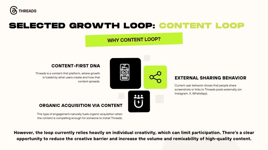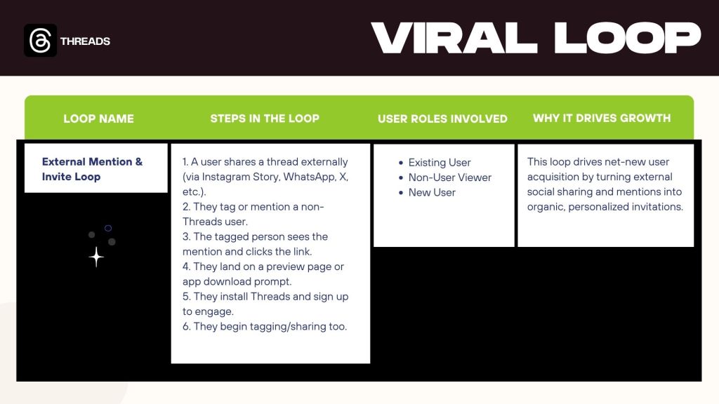 GOAL: The goal of this case study is to analyze how Threads currently drives user growth, identify key growth loops within the user journey, and uncover opportunities for scalable, product-led impact across acquisition, engagement, and retention.